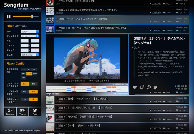 Songriumは、産業技術総合研究所メディアインタラクション研究グループが研究開発しています。 本研究では、人々の音楽の聴き方をより豊かにすることを目的に、 増え続ける音楽コンテンツの新しい楽しみ方を支える技術の研究開発に取り組んでいます。